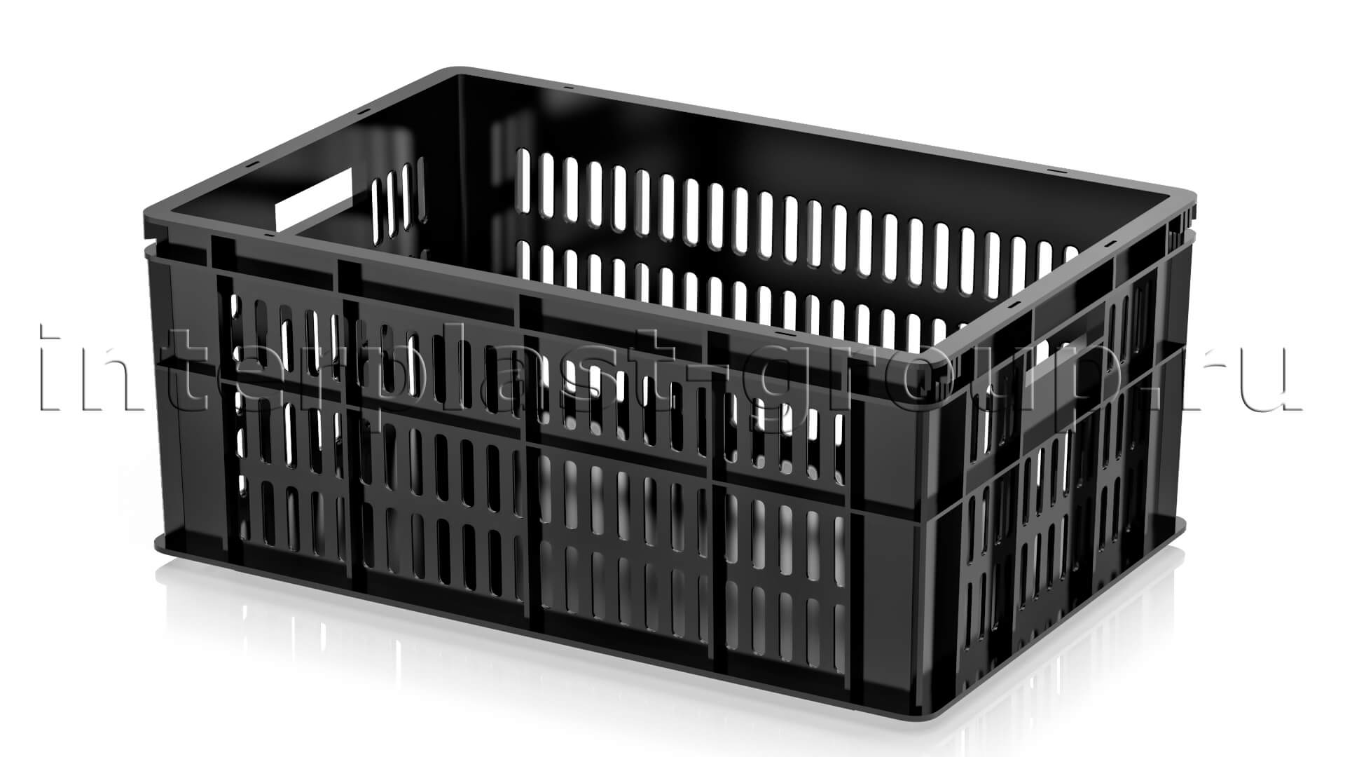 Ящик для молока, мяса, овощей и фруктов большая перфорация дно сплошное черный