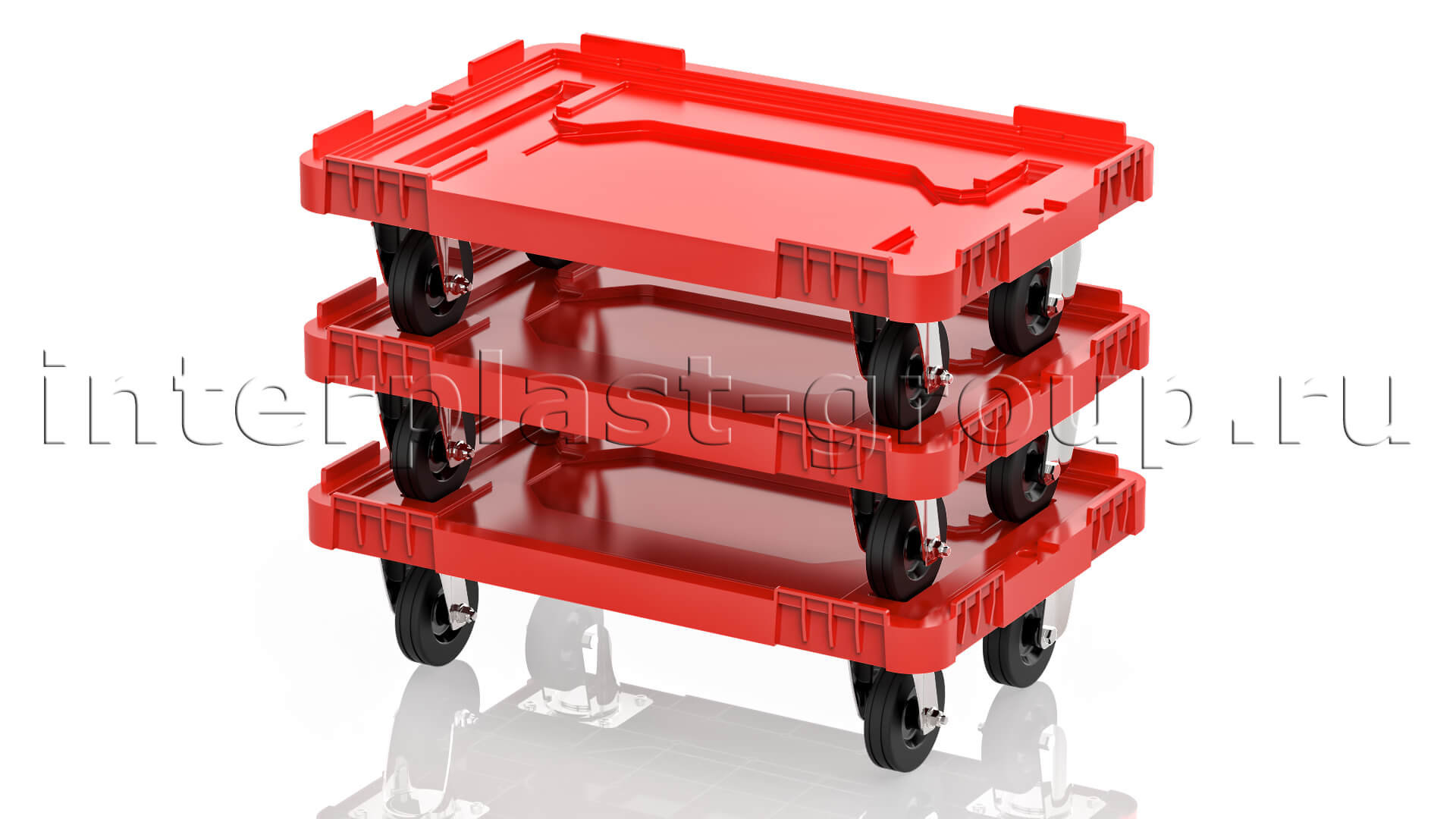 Тележка пластиковая сплошная без тормозов красная