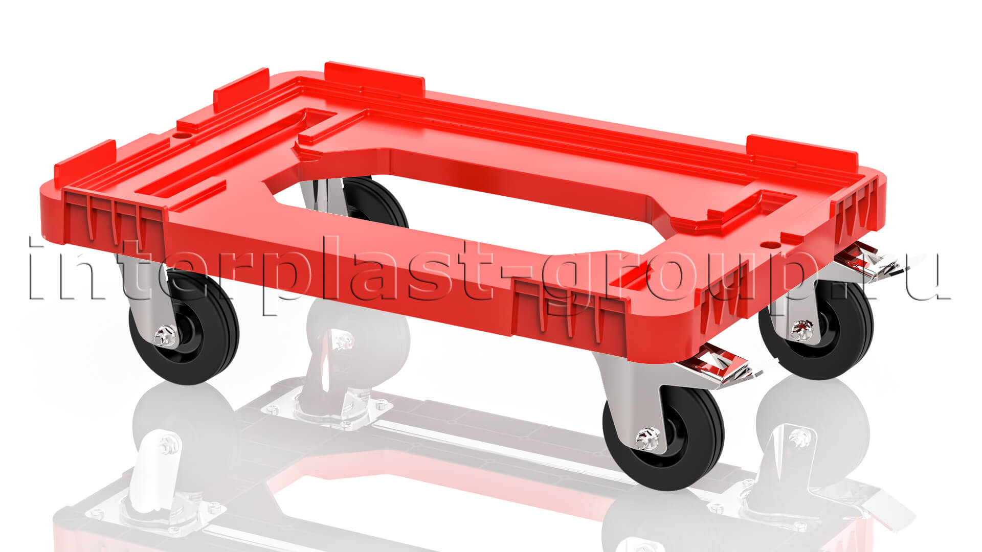 Тележка пластиковая с отверстием 2 колеса с тормозом усиленная красная